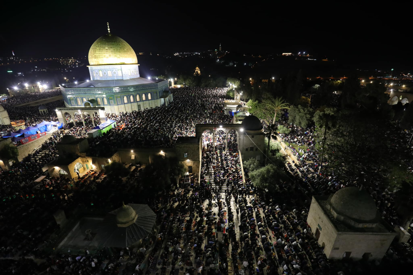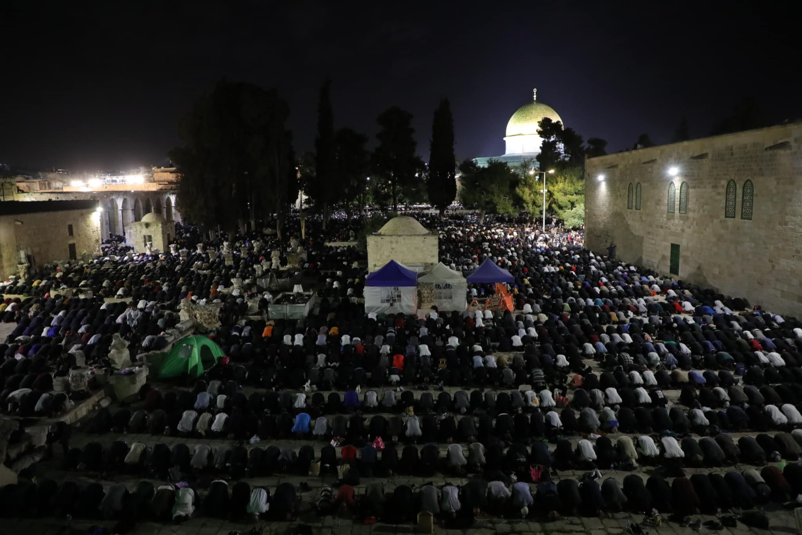 Binlerce Müslüman teravih namazını kılmak için Mescid-i Aksa ve avlusunu doldurdu. İslami Vakıflar Dairesi tarafından yapılan açıklamada, Kadir Gecesi'nde yaklaşık 280 bin kişinin Mescid-i Aksa'da olduğu ifade edildi.