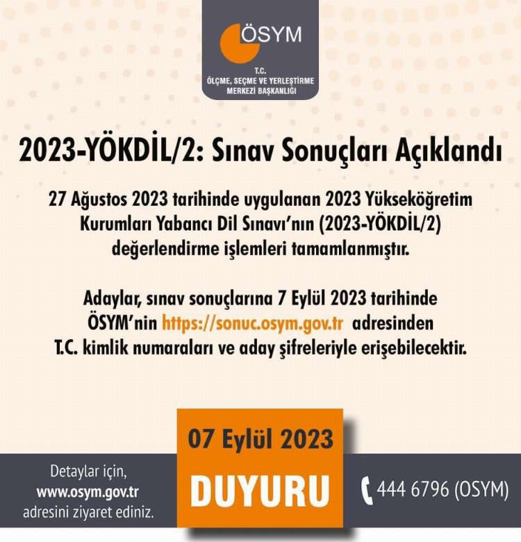Ölçme, Seçme ve Yerleştirme Merkezi (ÖSYM) Başkanlığı tarafından 2023-YÖKDİL/2 sonuçları açıklandı.
