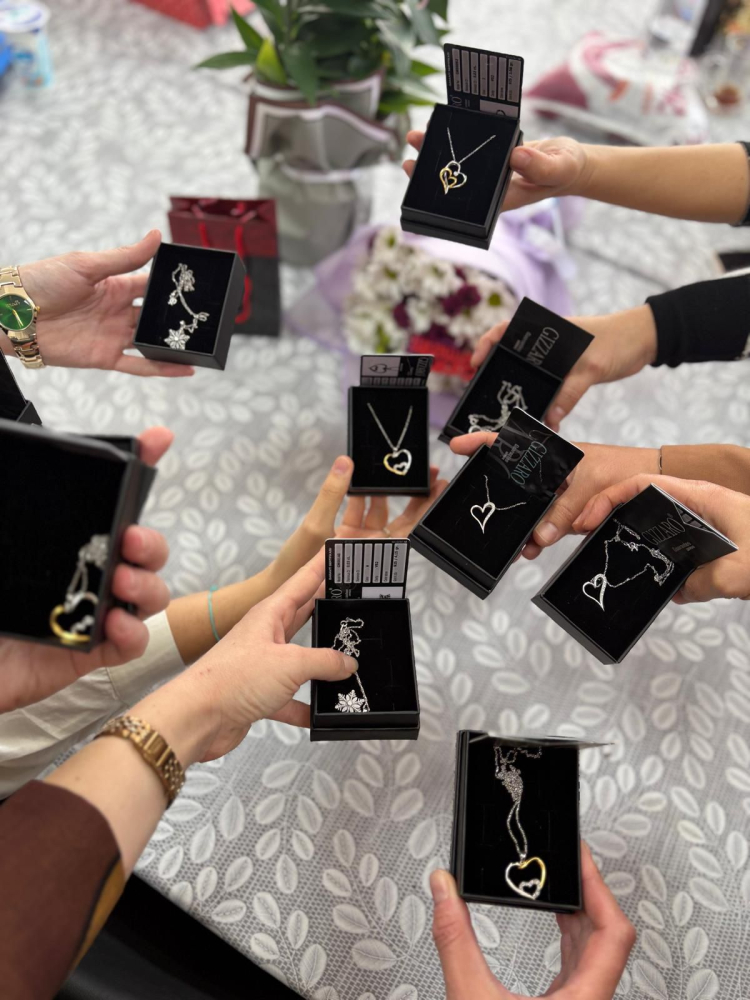 Okul Müdürü Zeki Kaplan, 24 Kasım’da anlamlı bir jest yaparak, okulda görev yapan tüm öğretmenlere şık hediyeler takdim etti. Öğle arasında düzenlenen programda öğretmenlere yemek ve pasta ikramı yapıldı. 24 Kasım’ı anlamlı kılan bir sürprize imza atan Kaplan, 25 kadın öğretmene pırlanta kolye, 8 erkek öğretmene ise saat, cüzdan, parfüm ve kemerden oluşan set hediye etti.