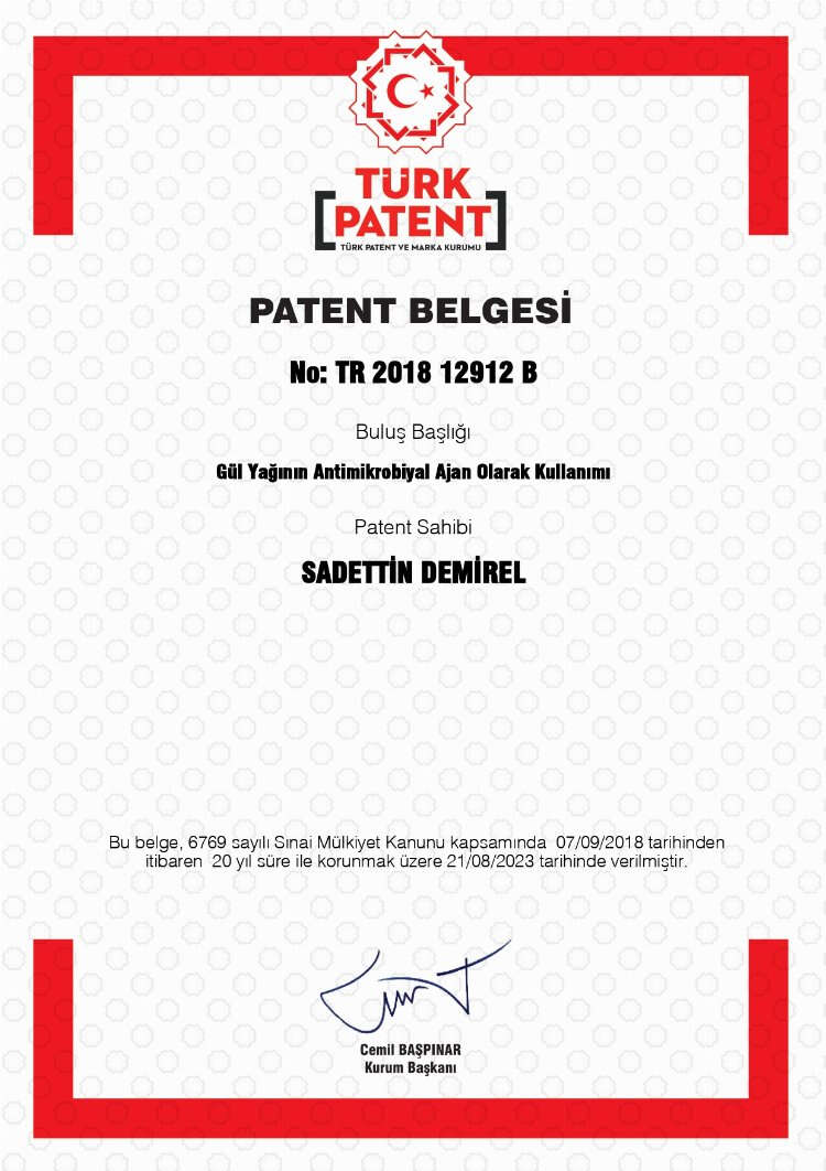 Çalışılan bakterilerin kültüre edilmiş suşlarına ve klinik izolatlarına karşı yüksek antimikrobiyal aktivite gösterdiği belirlenen gül yağının, bu bakterilerin oluşturabileceği enfeksiyonların önlenmesinde kullanılabileceğini aktaran Doç. Dr. Sadettin Demirel; “Buluş, antibiyotik kullanımının azaltılmasına katkı sağlayacak ve böylece antibiyotiklere karşı dirençli bakteri türlerinin gelişimini engelleyerek insan ve çevre sağlığı açısından yararlı etkiler gösterebilecek. Özellikle, gül yağı ekstraktından hazırlanan seyreltik solüsyon gargara olarak üretilebilecek ve belirlenen konsantrasyonların diğer ağız-diş sağlığı ürün formülasyonlarına dahil edilmesi ağızdaki kötü kokuları önlemekle birlikte ağız ve diş sağlığının korunmasına yardımcı olabilecek. Türkiye’nin dünya gül yağı üretimindeki payı göz önüne alındığında, buluş kapsamında üretilecek yüksek katma değerli 0 doğal patentli ürünler ülke ekonomisi açısından önemli bir rakabet gücü oluşturabilecek” açıklamasında bulundu.