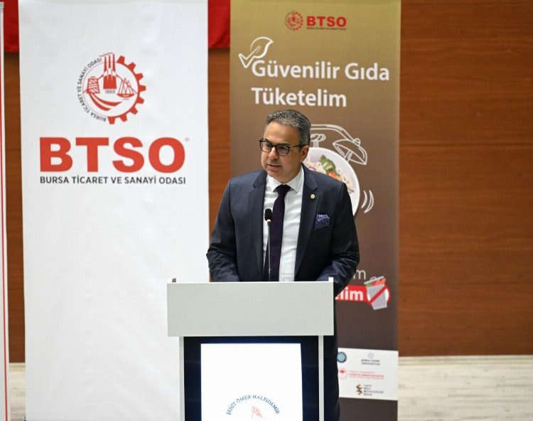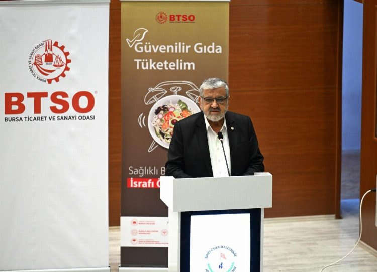 Çocukların güvenilir gıdalarla dengeli ve sağlıklı beslenmesini sağlamak ve israfın azaltılmasına destek olmak amacıyla BTSO öncülüğünde hayata geçirilen “Güvenilir Gıda Tüketelim- Sağlıklı Beslenelim, İsrafı Önleyelim” projesi Şehit Ömer Halisdemir Mesleki ve Teknik Anadolu Lisesi Konferans Salonu’ndaki açılış toplantısıyla başladı. Programa BTSO Yönetim Kurulu Üyesi Hakan Batmaz, BTSO Gıda ve Paketli Ürünler Konseyi Başkanı Burhan Sayılgan, Bursa İl Milli Eğitim Müdürü Dr. Ahmet Alireisoğlu, Bursa İl Tarım ve Orman Müdürü İbrahim Acar, Bursa İl Sağlık Müdürlüğü Halk Sağlığı Hizmetleri Başkan Yardımcısı Dr. Yunuz Arslan, BTSO meclis ve komite üyeleri ile öğretmenler ve çok sayıda öğrenci katıldı.