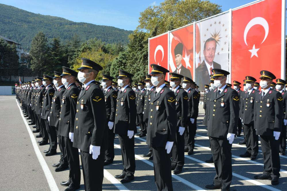 Bursa Işıklar Jandarma Astsubay Meslek Yüksek Okulu Komutanlığı’nda, korona virüs tedbirleri kapsamında astsubayların aileleri törene katılmazken, eğitimini başarıyla tamamlayarak mezun 400 astsubay adayı yemin etti.