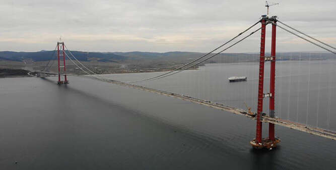 Asya ile Avrupa kıtalarını Çanakkale Boğazı’nda ilk kez birbirine bağlayacak 1915 Çanakkale Köprüsü’nün temeli, Cumhurbaşkanı Recep Tayyip Erdoğan tarafından 18 Mart 2017’de atılmıştı. Dünyada etkisini sürdüren Covid-19 salgınına rağmen şantiyede çalışmalar aksamazken, açılışı 18 Mart 2023’te açılması beklenen köprünün de hizmete girme tarihi bir yıl erkene alınarak 18 Mart 2022 olarak açıklanmıştı. Son gelişmelerle birlikte hızlı ilerleyen çalışmalar sonucu köprünün 26 Şubat’ta hizmete gireceği resmen açıklanmış oldu. Aradan geçen 5 yıllık süre sonunda Malkara ile Çanakkale arasında 1915 Çanakkale Köprüsü’nü de içeren 88 kilometre otoyol ve 13 kilometre bağlantı yolundan oluşuyor.