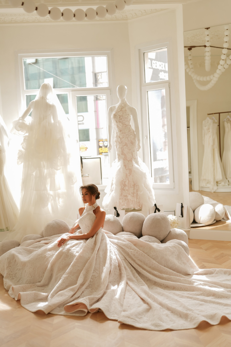 Özel tasarım gelinlikler için Mediha Cambaz Bursa showroom'dan randevu alabilirsiniz.