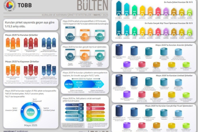 TOBB’un açıkladığı istatistiklere göre 2025 yılında toplam 45 bin 749 şirket ve kooperatif kurulurken, bu dönemde kurulan toplam 40 bin 66 limited şirket, toplam sermayenin yüzde 57’sini, 4 bin 825 anonim şirket ise yüzde 43’ünü oluşturmakta. Mayıs ayında kurulan şirketlerin sermayelerinin toplamı, Nisan ayına göre yüzde 37,7 oranında arttı.
