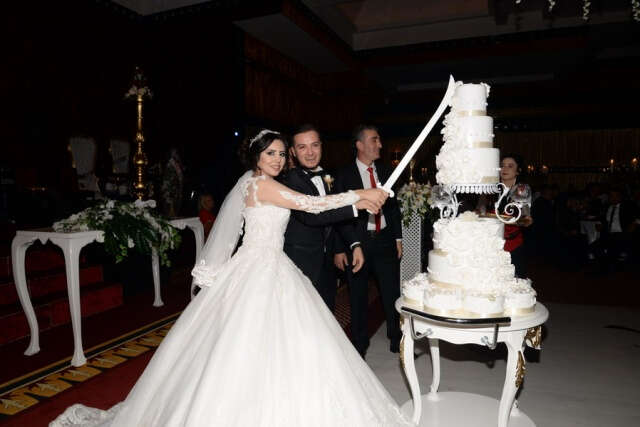 Genç çift gecede kendileri için hazırlanan pastayı alkışlar arasında kestiler.