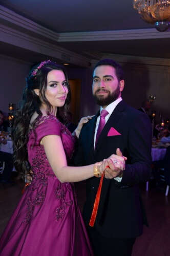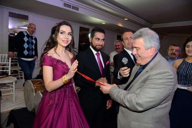 Genç nişanlılar gecenin açılış dansını alkışlar arasında yaptı.