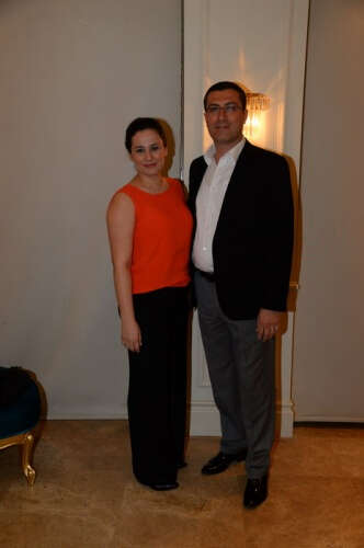 Çok sayıda davetlinin katıldığı nişan töreninde çiçeği burnunda nişanlıların nişan yüzüklerilerini Hamza Sarıbal, alkışlar arasında taktı