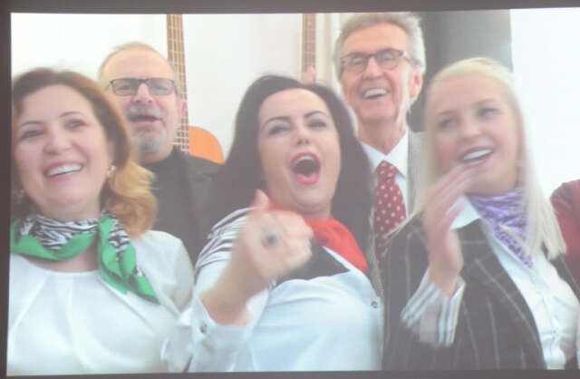 Koro üyeleri gecenin sonunda usta sanatçı ile birlikte hatıra fotoğrafı çektirdi.