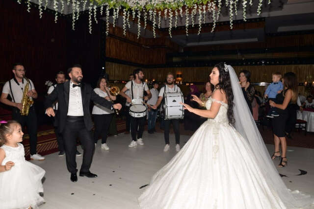 Gecenin dansında mini bandonun çaldığı şarkılarla bol bol dans eden çiçeği burnunda evliler romantik danslarını ise Özdemir Erdoğan ‘Pervane’ isimli parçası ile yaptı