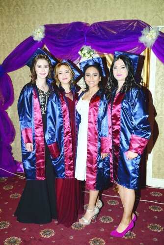 Plaketlerini alan ilk mezunlar ve öğretmenleri gecenin anısına objektiflere poz verdiler