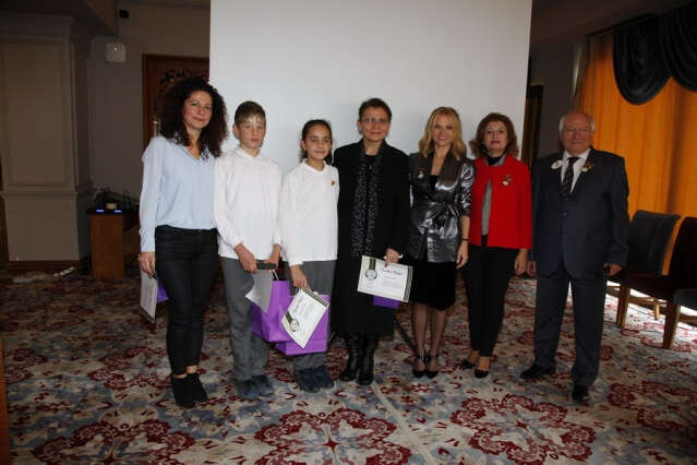 Başkan Özlem Can, sınıf öğretmeni Zeynep Karagöz, Meryem Çetinkaya, Furkan Yıldırım, Okul Müdürü Türkan Caner ve