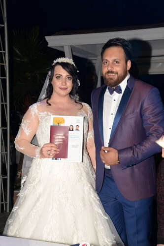 Resmi törenin ardından çiçeği burnunda evliler gecenin ilk dansını Eylem Aktaş’ın ‘Fikrimin İnce Gülü’ isimli parçası eşliğinde yaptılar.