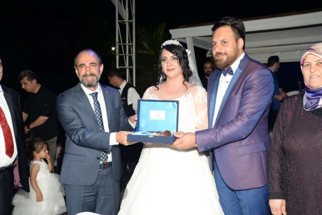 ldırım Belediye Başkanı İsmail Hakkı Edebali resmi imzalar sonrası genç çifte nikah töreninin anısına hediye takdim etti.