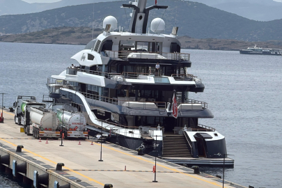 Adeta yüzen bir oteli andıran mega yat, yakıt ikmali için Bodrum’a geldi. Yatın yakıt ihtiyacını karşılamak üzere iskeleye peş peşe gelen yaklaşık 20 tankerle toplamda 128 ton yakıt ikmali gerçekleştirildi. Yaklaşık 5 milyon liralık yakıt aldığı öğrenildi.