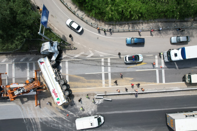 Türkiye'nin önemli geçiş güzergahlarından biri olan Sakarya-Bilecik D-650 kara yolunun Geyve ilçesi geçişinde hafif ticari araca çarptıktan sonra kontrolden çıkan As Piliç'e ait 25 ton tavuk yemi yüklü tır, yan yatarak Bilecik istikametini ulaşıma kapattı. Uzun araç kuyruklarının oluştuğu yol ve kaza yeri havadan görüntülendi.