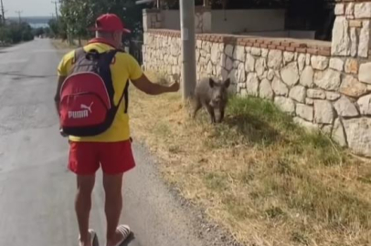 Bursa'da bir vatandaş, aç kalarak şehir merkezine inen bir domuzu bisküvi ile besledi. O anlar saniye saniye amatör kamera ile kaydedildi.