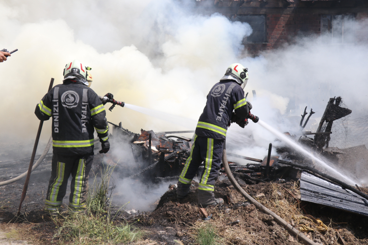 Denizli'de müstakil evin bahçesinde başlayan yangın evi küle çevirdi. Ailesinin evinin yandığı haberini alır almaz olay yerine gelen bir kadının babasını evin dışında görünce yaşadığı sevinç ise dikkatlerden kaçmadı.