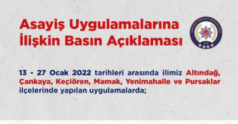 Ankara İl Emniyet Müdürlüğü ekiplerince 13-27 Ocak arasında Altındağ, Çankaya, Keçiören, Mamak, Yenimahalle ve Pursaklar ilçelerinde yapılan uygulamalarda 529 bin 103 kişiye Genel Bilgi Toplama (GBT) sorgulaması yapıldı. Sorgulama sonucunda şüpheli görülerek yakalanan 2 bin 19 şahıstan 379’u tutuklanarak cezaevine gönderildi.