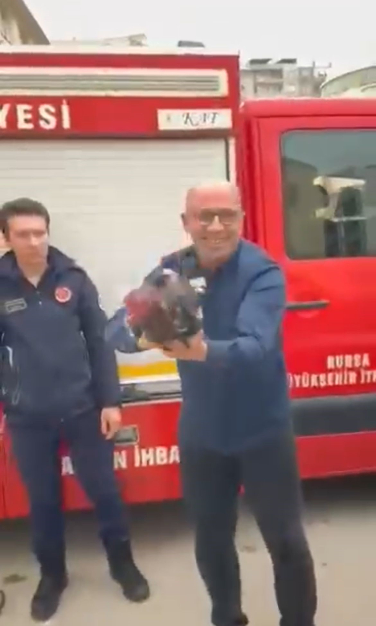 Olay, Gemlik ilçesinde meydana geldi. Aracını çalıştıracağı sırada motordan sesler geldiğini fark eden sürücü, durumu 112'ye bildirdi. İhbar üzerine olay yerine Bursa Büyükşehir Belediyesi itfaiye ekibi sevk edildi. Motor kısmını açan ekipler, kedi beklerken karşılarında horoz gördü. Aracın motor bölümüne sıkışan horoz, itfaiye ekiplerinin müdahalesiyle kurtarıldı. Kurtarılma anı amatör kameraya yansıdı.