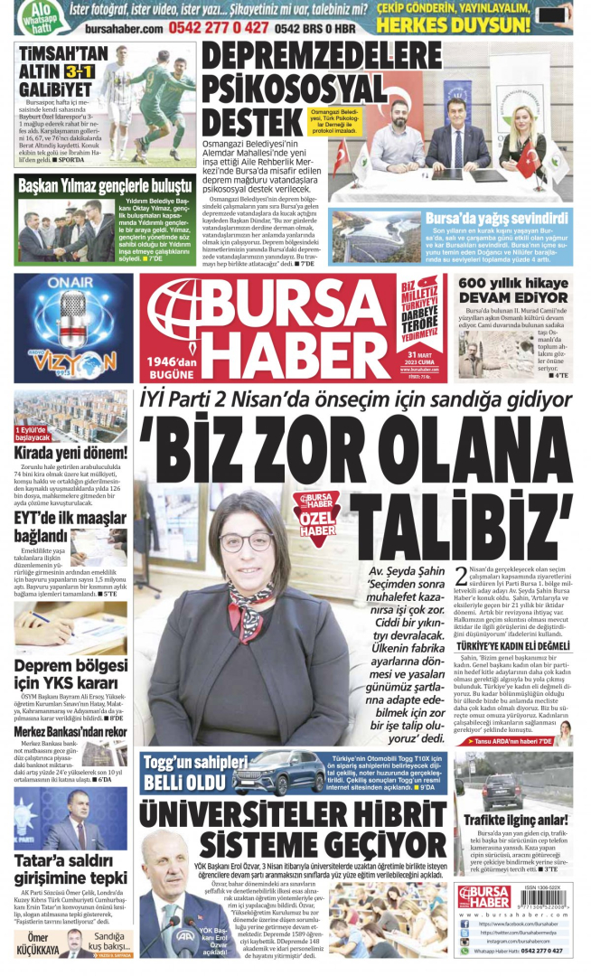 Bursa ile ilgili olarak yaklaşan büyük depremin sinyallerinin verilmesi öncelikle insanların canları sağ olmalı diyorum. Bursa’daki bu çarpık yapılaşma ile alakalı ilk hedefimiz bu. Öncelikle yaşayabilmeliyiz. Türkiye’nin gündemi deprem. Bursa’nın her yönünden fay hattı geçiyor. Böyle bir gerçek varken bu gerçekten uzaklaşmamalıyız’ dedi.