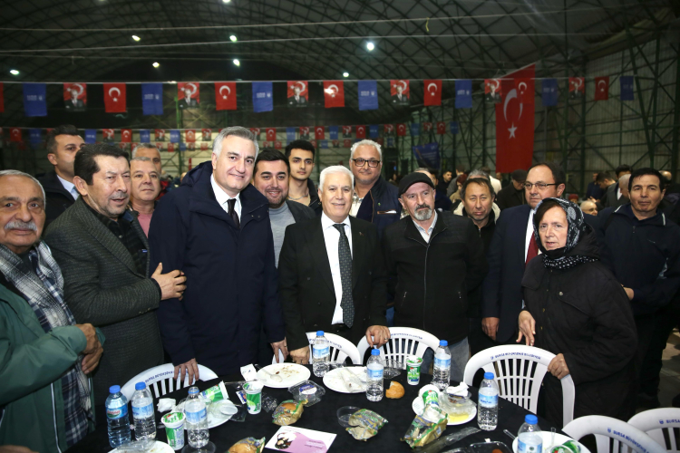 Bursa Büyükşehir Belediyesi tarafından ilçelerde düzenlenen geleneksel iftar programları Mudanya ile devam etti. Mudanya Kapalı Pazar Alanı’ndaki programa, Bursa Büyükşehir Belediye Başkanı Mustafa Bozbey, CHP İl Başkanı Nihat Yeşiltaş, Mudanya Belediye Başkanı Deniz Dalgıç, Büyükşehir Belediyesi Genel Sekreteri Doç. Dr. Ergül Halisçelik, muhtarlar, belediye meclis üyeleri ve vatandaşlar katıldı. İftar öncesi Orkestra Şube Müdürlüğü’nün verdiği mini konser iftar programına renk kattı. Akşam ezanıyla birlikte vatandaşlar hep birlikte oruçlarını açtı.
