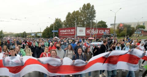 Belarus’ta 9 Ağustos’ta gerçekleştirilen devlet başkanlığı seçimlerinin ardından patlak veren hükümet karşıtı protestolar 7 haftadır devam ediyor. Başkent Minsk başta olmak üzere ülkenin dört bir yanında bir araya gelen on binlerce gösterici Devlet Başkanı Alexander Lukaşenko’yu protesto ederek, istifa çağrılarını yineledi. Protestolar öncesi sıkı tedbirler alan güvenlik güçleri başkentteki birçok metro istasyonunu ve mobil interneti kullanıma kapattı. Protestocular, kırmızı-beyaz bayraklar ile sokaklara dökülerek, “Sahtekar” ve “Sveta bizim başkanımız” sloganları attı. Bazı göstericiler ise, Lukaşenko’nun gizlice gerçekleştirdiği yemin töreni ile ala ederek, “Başkanın göreve başlamasını kutlamaya geldik” ifadelerini kullandı.