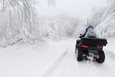 Kocaeli'deki Türkiye'nin önemli kış turizm merkezlerinden Kartepe, vatandaşların uğradığı alanlar arasında yerini koruyor. Hava sıcaklığının -4 derece kadar düştüğü Kartepe'nin yüksek kesimlerinde kar, bir haftadır belirli aralıklarla etkisini sürdürüyor. Samanlı Dağları'nın 1640 rakımlı zirvesi Kartepe'de her yer beyaz örtü ile kaplandı. Kar yağışını fırsat bilen macerasever, ATV ve UTV araçlarıyla karla kaplı doğanın tadını çıkardı. Grup, hem doyasıya eğlendi hem de manzarayı kaydetme imkanı buldu. Yaklaşık 50 santimetreye kadar ulaşan karın tadını çıkaran grup, her sene Kartepe'ye gelerek eğlendiklerini belirtti.