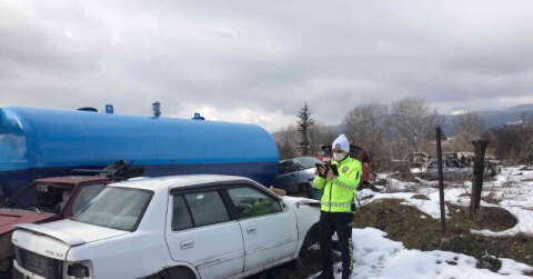 Bolu’da tehlike oluşturan hurda araçlar polis ekipleri tarafından tespit edilerek çekicilerle toplanarak otoparka götürüldü.