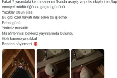 Yaşanan durumun birden çok şekilde ele alındığını belirten Alaçam, "Ödeme yapmamak için gelen misafirler oldu ama böylesi hiç olmamıştı. Benim kafama takılan aleni belli bir kamera orada 3 ampul var ve biri çok bariz beli ve mor bir ışık saçıyor. Herkes şüphelenir zaten bunu görünce. Umarım en yakın zaman da kimin yaptığı ortaya çıkar. Neticede onu bir başkası da oraya yerleştirmiş olabilir ülkede manyak ve psikopat çok kimin ne gaye ile yaklaştığını bilemeyiz. Daha önce bir gün kalmış biri onu oraya takıp uzaktan takip ediyor da olabilir" ifadelerini kullandı.