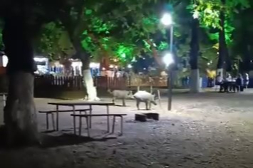 Bursa'nın Karacabey ilçesinde aç kalan domuzlar, insanların oturduğu park alanına indi. O anlar vatandaşlarca kaydedildi.