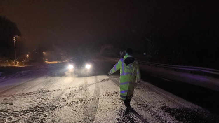 İnegöl Jandarma komutanlığı ekipleri ve Karayolları ekipleri yoğun mesai harcadı. Jandarma komutanlığı Trafik Timleri, İnegöl'ün Tahtaköprü mahallesi girişinde uygulama yaparak ağır tonajlı araçların geçişine izin vermedi. Kış lastikleri olan otomobillerin sürücülerine de zincirsiz ulaşımlarına izin vermediler.