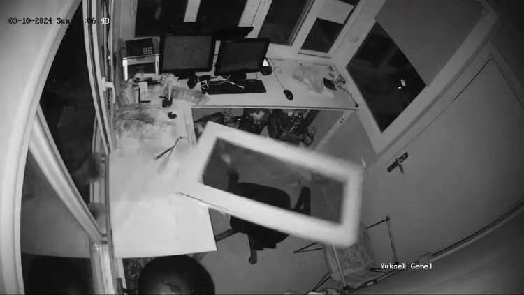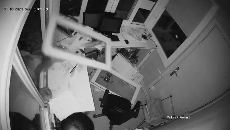 Uludağ’ın ormanlarında yiyecek bulamayan ayılar, insanların yaşadığı ortamlara inerek yiyecek aramaya devam ediyor. Güvenlik kameralarına yansıyan son görüntüler, Sarıalan Bölgesinde kayda alındı. 2 yavrusu ile birlikte yiyecek arayan ayı, önüne gelen ne varsa yıktı geçti. Yavrularını doyurmak için yiyecek bulmak zorunda olan yetişkin ayı, çöp konteynerlerinde bir şey bulamayınca, Macera Park'ın güvenlik kulübesine girmeye çalıştı. Gişenin camını zorlayarak indiren ayı, içeri giremeyince diğer camı da zorlayarak kırdı.