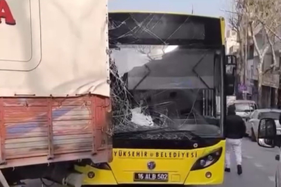 Bursa’da içi yolcu dolu belediye otobüsü park halindeki kamyona arkadan çarptı.