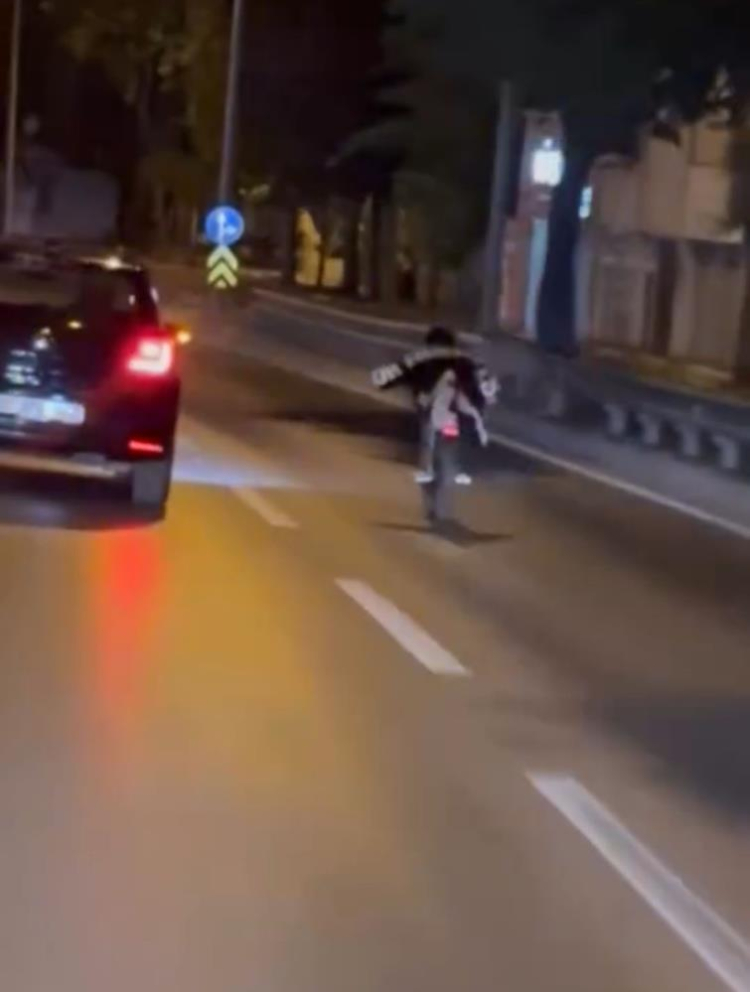 Bursa'nın Osmangazi ilçesinde motosikletli bir şahıs tek teker üzerinde uzun süre ilerleyerek trafikte adeta şov yaptı. Trafikte hızla manevra yapan sürücü, hem kural tanımadı hem de kazaya davetiye çıkardı. Bir başka görüntü ise merkez İzmir Yolu üzerinde kaydedildi. Motosiklet sürücüsü, hareket halindeyken yatarak ilerledi. Yüksek hızla trafikte ilerleyen şahsın tehlikeli yolculuğu, diğer sürücüler tarafından cep telefonuyla saniye saniye kaydedildi. Trafik güvenliğini hiçe sayan sürücüler, sosyal medyada da büyük tepki topladı.