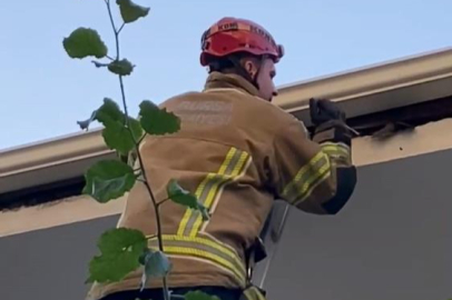 Bursa'da çatıya sıkışan kuş itfaiye tarafından kurtarıldı
