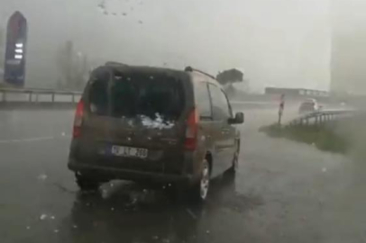 Bursa'da dolu yağışı sürücülere zor anlar yaşattı