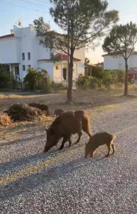 Bursa'da domuz sürüsü ilçe merkezine indi