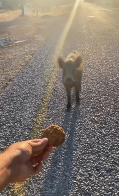 Bursa'da aç kalan domuz sürüsü ilçe merkezine indi. Vatandaşlar domuzları kurabiye ile besledi.