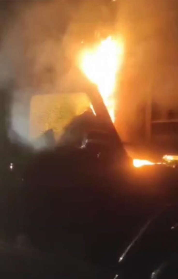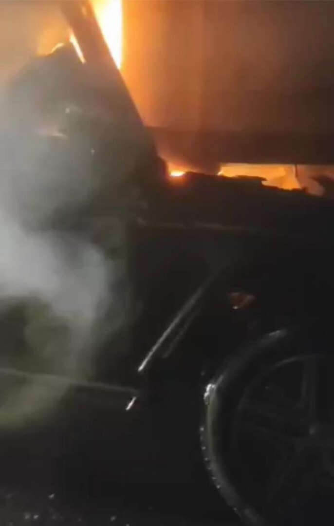 Bursa'da lüks cip, seyir halindeki tıra arkadan çarparken, sürücüsü çarpmanın şiddetiyle bayıldı. Cip kısa sürede alev alırken, sürücüsü vatandaşlar tarafından son anda kurtarıldı. O anlar, yardıma gelen bir vatandaşın cep telefonu kamerasına yansıdı.