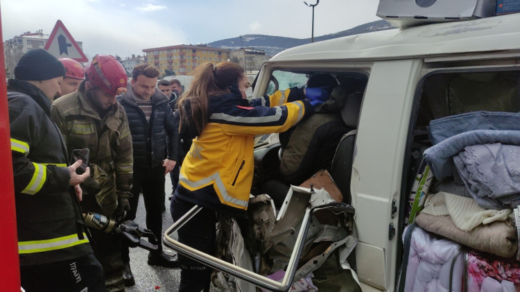 Bursa’nın Orhangazi ilçesinde meydana gelen trafik kazasında yol ortasına düşen bir meyve selesine çarpmamak için manevra yapan minibüs, önünde seyir halinde olan hafif ticari araca çarptı. Kazada minibüs sürücüsü araç içinde sıkıştı. İtfaiye ekipleri tarafından araç içinden çıkarılan yaralı sürücü ambulansla hastaneye kaldırıldı.