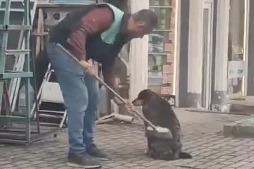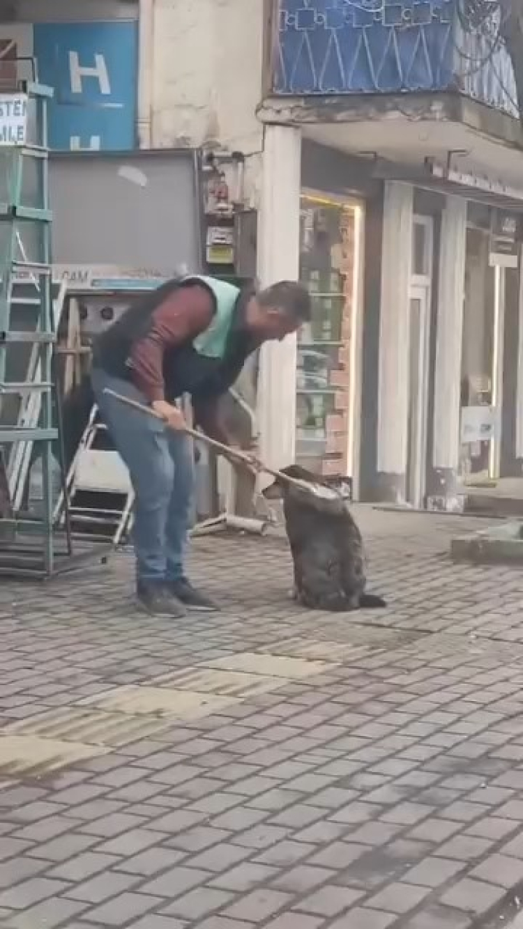 Bursa'da bir vatandaş elindeki fırçasıyla sokak köpeğini temizledi. Vatandaşın köpekle olan görüntüsü yürekleri ısıttı.