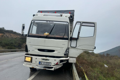 Bursa’nın İznik ilçesinde kontrolden çıkan kamyon bariyerlere çarparken, uçuruma düştüğünü zanneden sürücü ise araçtan atlayarak hafif şekilde yaralandı. Sürücüsüz ilerleyen kamyon ise bariyerlere çarparak 400 metre ilerde durdu.