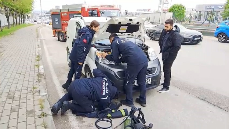 Bursa'da seyir halindeyken aracından kedi sesi duyan vatandaş, durumu itfaiyeye bildirdi. Aracın motorunda bir süre seyreden kedi, itfaiye ekiplerince sıkıştığı yerden çıkarıldı.