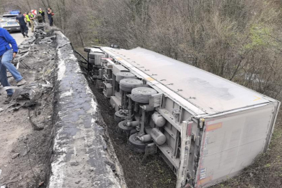 Bursa'da kontrolden çıkan TIR şarampole yuvarlandı: 1 yaralı