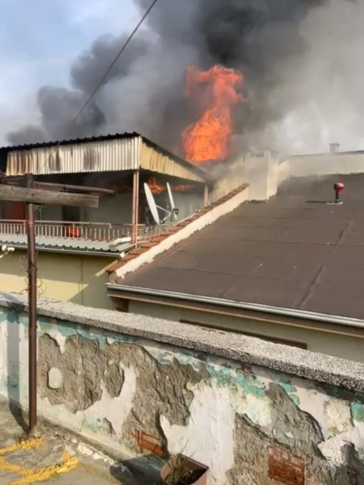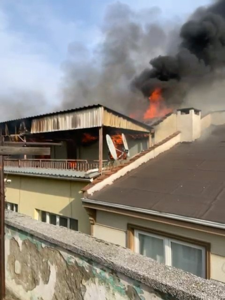 Bursa'nın İnegöl ilçesinde 3 katlı binanın çatısında yangın çıktı.