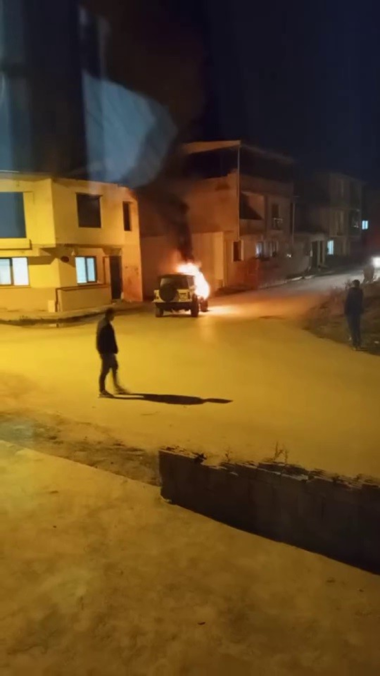 Olay, Karacabey ilçesi Yeni Mahalle'de meydana geldi. Lüks bir cip, sokak ortasında henüz bilinmeyen bir sebepten dolayı alev aldı. Kısa sürede büyüyen alevler tüm aracı sardı. İhbar üzerine olay yerine gelen itfaiye ekiplerince yangın söndürüldü. Yangında can kaybı yaşanmazken, araç kullanılamaz hale geldi.