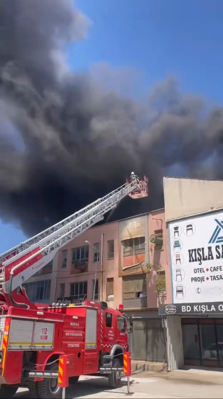Bursa'nın İnegöl ilçesinde mobilya imalathanesinin çatı katında çıkan yangın 1 saatte söndürüldü.