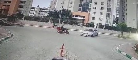 Kaza, merkez Osmangazi ilçesi Emek Mahallesi’nde meydana geldi. Güvenlik kamerasına yansıyan görüntülerde otomobil sürücüsü Turgut Özal Caddesi üzerinde başka araçların süratle geçmesine aldırmadan ters şeride girerek dönüş yapmaya çalıştı. Bu esnada cadde üzerinden Emek istikametine giden motosiklet sürücüsü önüne aniden çıkan otomobile çarptı. Çarpışmanın etsiyle otomobilin üzerine savrulan motosikleti kaskı sayesinde çok ciddi yaralanmazken, kaza anı güvenlik kamerasına saniye saniye yansıdı.
