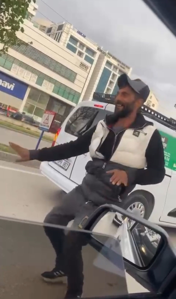 Bursa'da lambalarda araçların arasında seyyar çiçekçilik yapan vatandaş, araç içinden gelen müzik sesine dayanamayarak oynamaya başladı.
